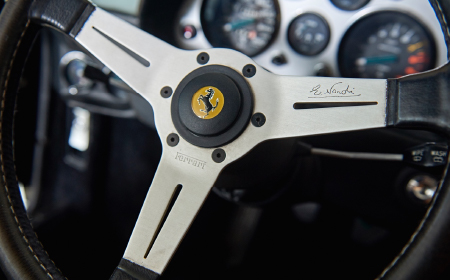 ホワイトボディは稀少性が高く、クラシックフェラーリの中でも独特の存在感を放ちます。